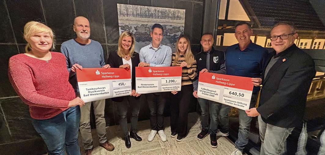 Die Sparkassen-Stiftung Erwitte-Anröchte schüttet jährlich Geld aus, mit dem gemeinnützige Arbeit und bürgerliches Engagement in der Region unterstützt wird. In diesem Jahr hat die Stiftung Projekte von drei Erwitter Vereinen mit insgesamt knapp 2300 Euro gefördert. Das Tambourkorps Bad Westernkotten erhielt 450 Euro für die Unterstützung der Jungspielerausbildung. Für das Projekt zur Aufwertung...