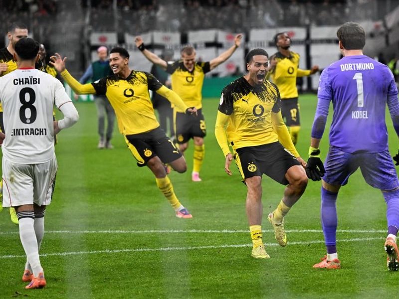 Frankfurt/Main (dpa) - Gregor Kobel schrie seine Freude heraus, dann stürmten auch schon die Dortmunder Spieler auf...
