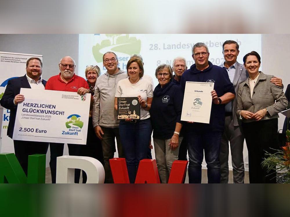 Auf Haus Düsse hat NRW-Landwirtschaftsministerin Silke Gorißen dem Rüthener Ortsteil Kallenhardt offiziell die Silbermedaille im Landeswettbewerb „Unser Dorf hat Zukunft“ überreicht.