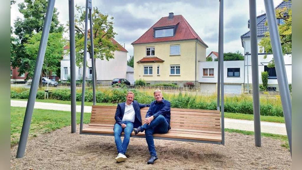 ...März dieses Jahres lädt ein neues Highlight am Ufer der Heder in Salzkotten zum Verweilen ein: Eine überdimensionale Hollywoodschaukel mit Platz für bis zu sechs Erwachsene. Gestiftet wurde die Schaukel von Dr. Bernd Nolte (r.), geschäftsführender...