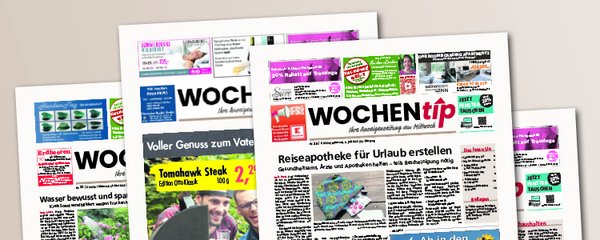 Werben in unserem Medium ist einfach und erfolgreich. Wir bieten Ihnen Beratung, Betreuung und Service aus einer Hand. Gerne erstellen wir Ihnen auch Druckunterlagen inklusive Vorabkorrekturen. Im Umfeld unserer vielfältigen Sonderthemen erreichen Sie immer die richtige Zielgruppe. Mit einer Anzeigen- oder Beilagenwerbung im Wochentip erreichen Sie eine breite Leserschaft, um auf Ihre Aktionen und Angebote aufmerksam zu machen.